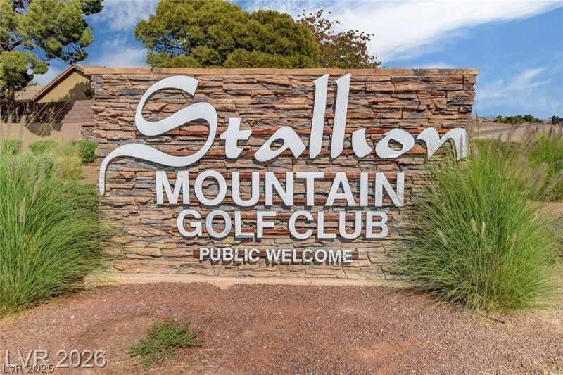 HUGE PRICE REDUCTION. Welcome to Stallion Mountain! A prestigious guard-gated golf course community. This residence invites you in through a private, gated courtyard?an ideal spot to relax and savor the sunshine. Inside, the thoughtfully designed floor plan offers 4 bedrooms and 2 full baths, with two bedrooms on each side of the home to maximize privacy. The kitchen offers a generous amount of cabinetry and storage. Ceiling fans and cellular shades in every room, carpet in all rooms. High ceilings create an airy, openness throughout. With multiple living spaces?including a formal living room, elegant dining room, cozy breakfast nook, and spacious family room?provide abundant options for entertaining or quiet enjoyment. Outside, the backyard features a covered patio and relaxing views of the natural open space with bunnies running around. NO NEIGHBORS behind you! Dont forget the 3rd car garage and SOLAR. The lease is 140/month and NO NV ENERGY BILL YEAR ROUND!