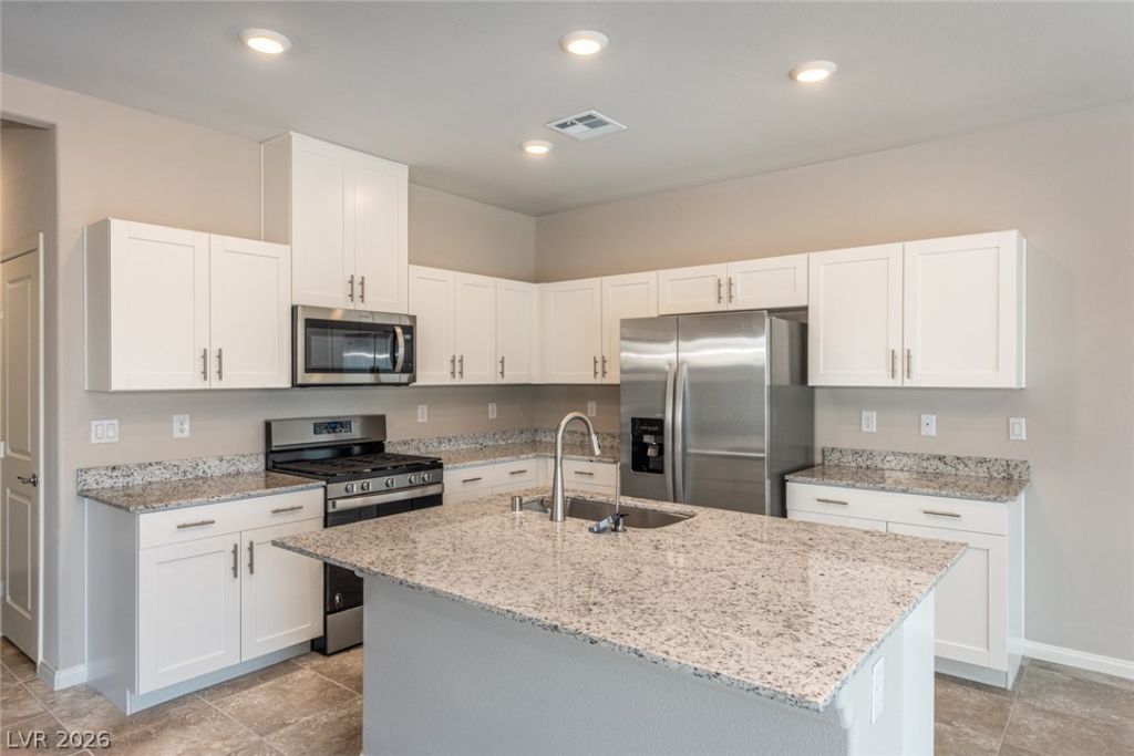 Charming two-story home featuring 4 bedrooms an attached two-car garage with direct entry. The thoughtfully designed open layout allows the living room to flow seamlessly into the kitchen, creating an inviting space for both everyday living and entertaining. The main level is finished with tile flooring throughout, while the kitchen is equipped with recessed lighting, custom cabinetry, stainless steel appliances, and granite countertops?combining style and functionality. All bedrooms are situated upstairs, offering privacy and comfort, along with soft carpet flooring. The primary suite provides a cozy retreat, complete with a ceiling fan and ample natural light. The en-suite bathroom features dual sinks and a walk-in shower. A bright and peaceful loft adds flexibility for a home office, lounge, or additional living space. A well-balanced home with practical design and comfortable living in mind.