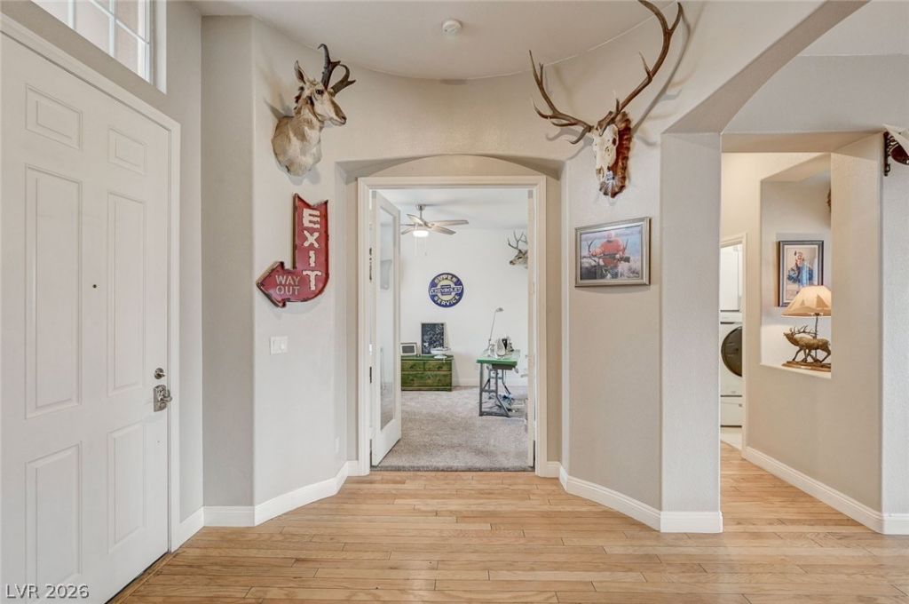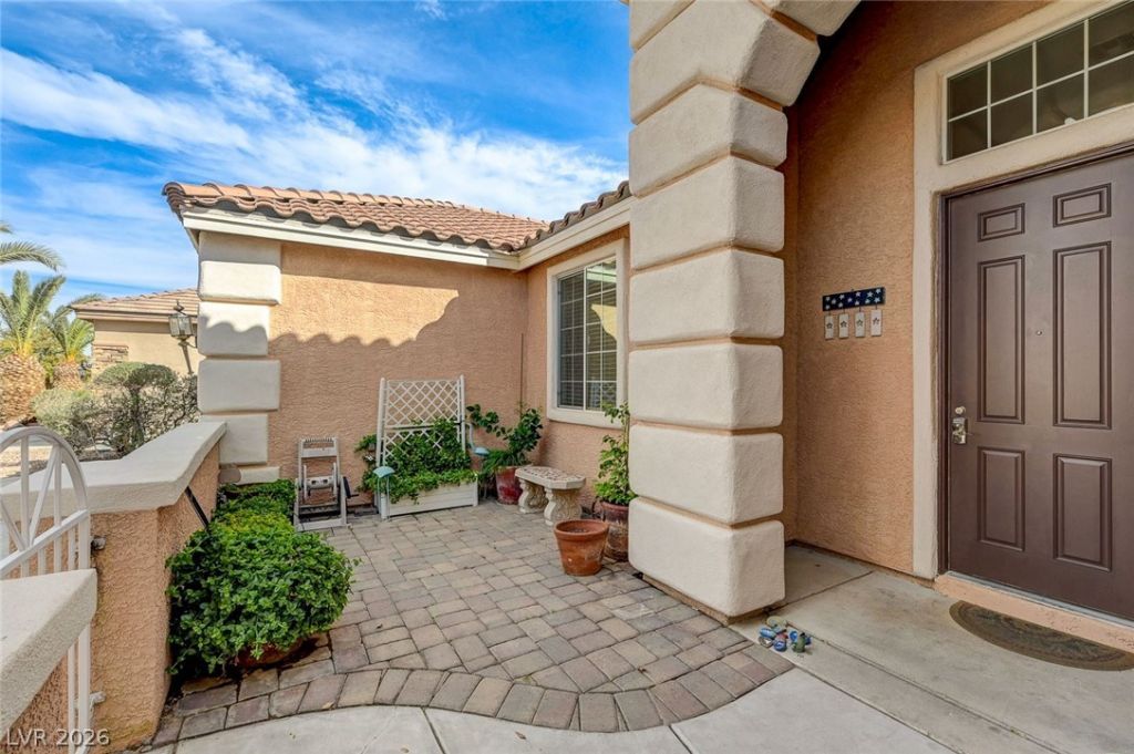 Southern Terrace, by Perma Built Homes is a small subdivision with primarily only single story homes on large lots tucked away in the SW valley, they are very well built, well insulated, low E windows, very high ceilings. Near new shopping and restaurants on The Curve off the 215, newly slated Childrens Hospital, Downtown Summerlin and Tech Center. Borders Summerlin without the fees.This home has a dramatic round entry room. Master retreat completely separate.House faces North, very little direct sun, but tons of natural light. Private corner/cul de sac lot with fruit trees, built in gas fire pit, mountain views, 2 new A/C's, 2022, lot sits higher than homes behind. Hardwood floors except bedrooms and bathrooms.Could be 5 bedrooms, including den and master sitting room. Kitchen features double ovens, pull out shelves in the lower cabinets, 5 burner gas stove top. Room for a pool, large courtyard entry, very close to shopping, restaurants, schools, new park and 215 freeway access.